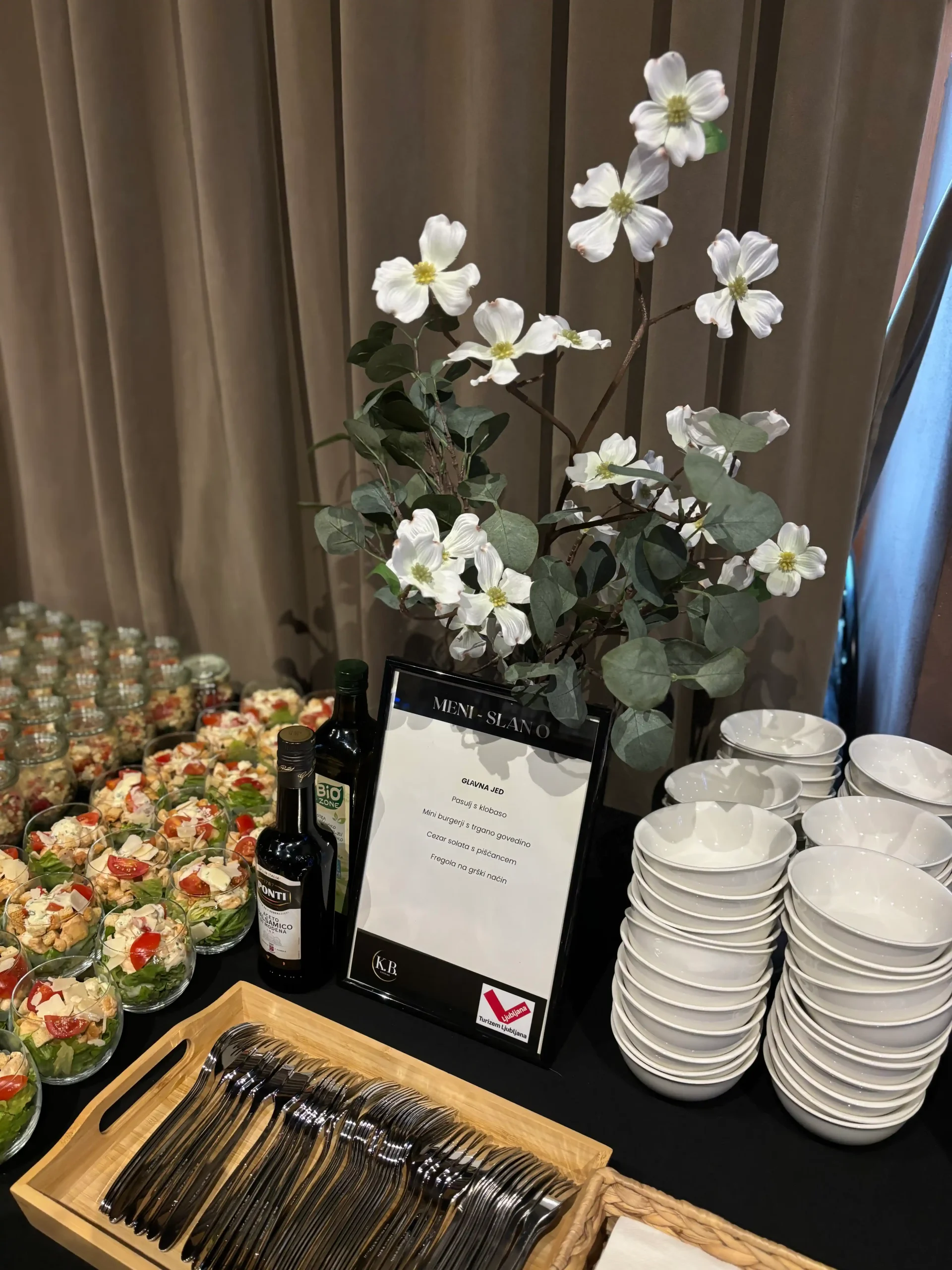 Da, nudimo celovito storitev, ki vključuje tudi dekoracijo. Naša ekipa oblikovalcev bo poskrbela, da bo ambient vašega dogodka usklajen z vašo blagovno znamko in tematiko. Od cvetličnih aranžmajev do postavitve miz, poskrbimo za vse podrobnosti.
